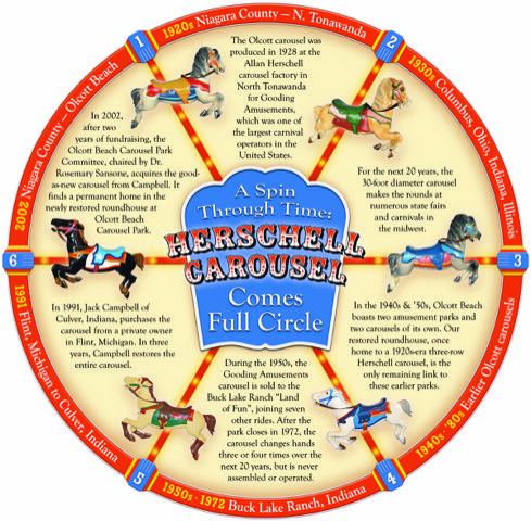 A small committee, under the chairmanship of Dr. Rosemary Sansone, was formed from the Krull Olcott Development Committee. The committee began fundraising to restore the carousel roundhouse building on the site of the former Olcott Amusement Park. The Eastern Niagara Chamber of Commerce helped the restoration by raising funds and providing in-kind services. The restoration was completed in 2002. Olcott Beach became the site for one of the sculptures featured in Art on Wheels, entitled One Tired Horse by artist John Dee. Unfortunately, One Tired Horse is no longer in the park, taken out because it was in disrepair.